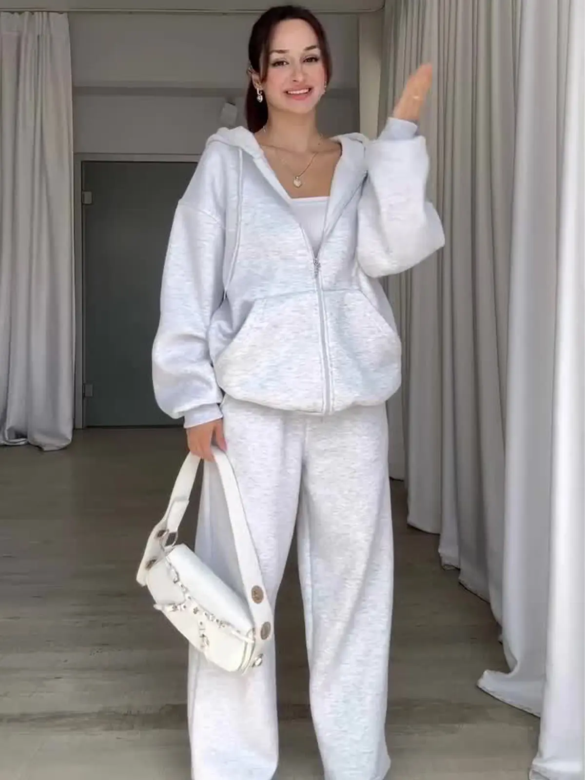 طقم كارديجان فضفاض وبنطلون بلون سادة